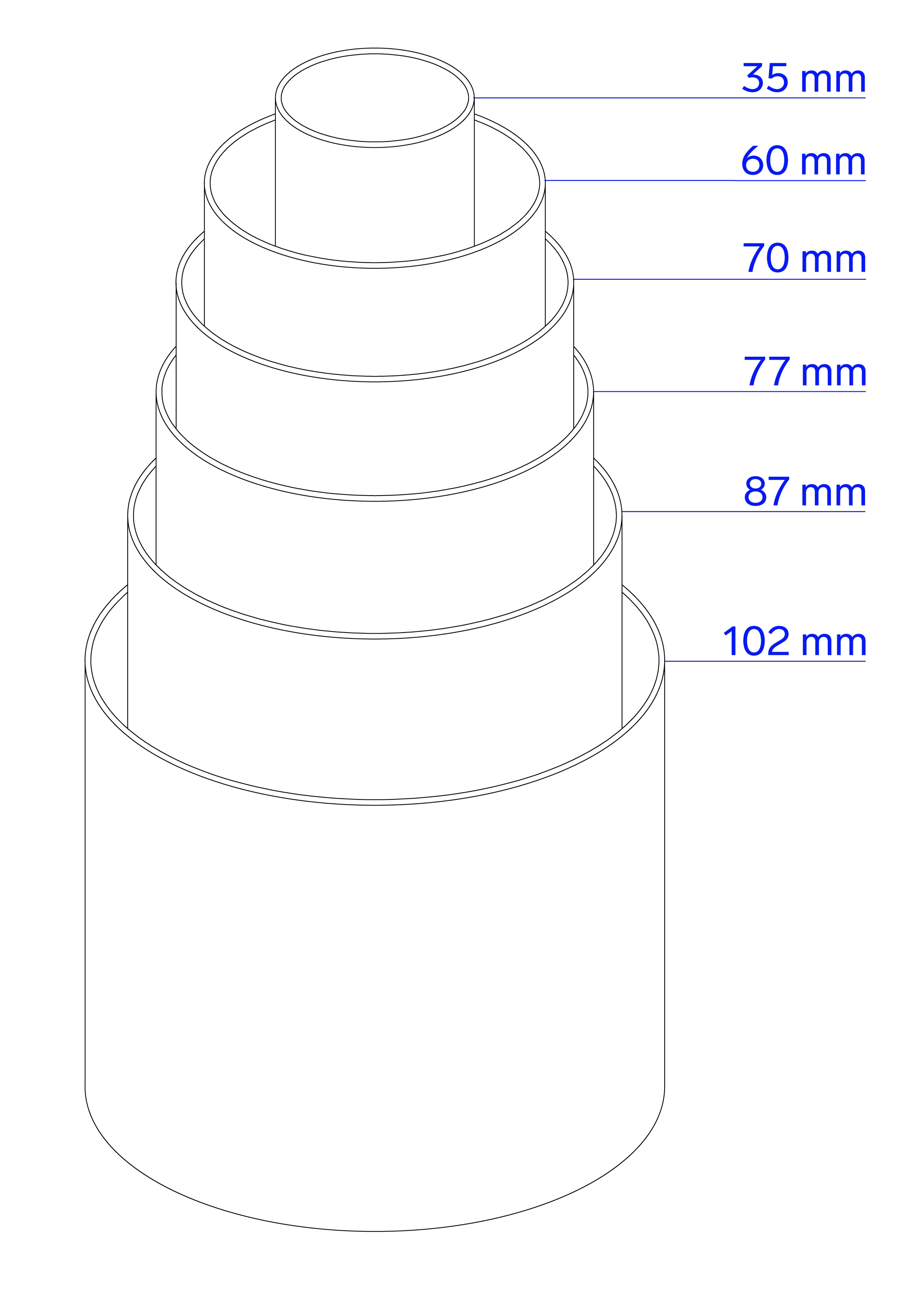 Pro drobné kosmetické produkty vám bude stačit průměr 35mm, pro parfémy 60mm, plakát se vám vejde do průměru 70mm, svíčka do průměru 77mm, pro lahev na víno je ideální průměr 87mm a když vám ani to nebude stačit, je tu největší průměr 102mm.